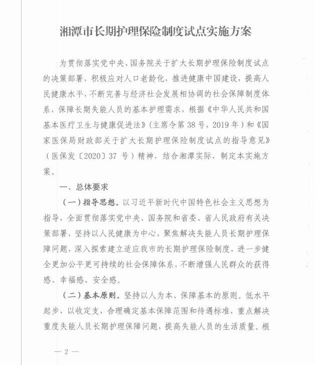潭政辦發(fā)〔2020〕33號湘潭市人民政府辦公室關(guān)于印發(fā)《湘潭市長期護(hù)理保險(xiǎn)制度試點(diǎn)實(shí)施方案》的通知